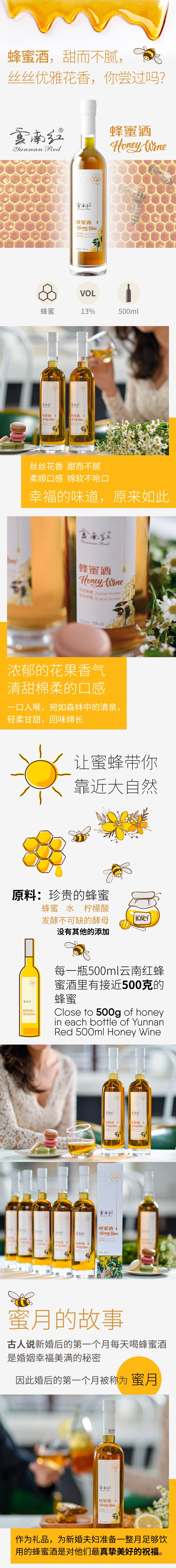 蜂蜜酒,甜而不腻,丝丝优雅花香,你尝过吗? 悠远的岁月里,智慧的酿酒师把蜂蜜带进酒的世界。蜂蜜与生俱来的迷人花香,交织着醇厚的酒香,奇妙而有趣。这款酒的蜂蜜以缅甸西西果和马来西亚相思树的花蜜为原料,香气浓郁,入口顺滑。甜而不腻,后味悠长。 好友聚会,亲人团聚,用这份甜蜜铭记每一个幸福时刻。冰镇后效果更佳。