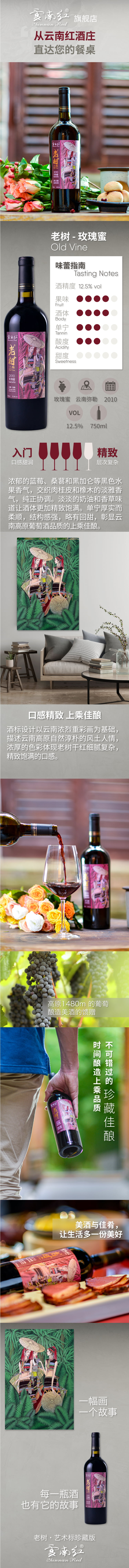 浓郁的蓝莓、桑葚和黑加仑等黑色水果香气,交织肉桂皮和橡木的淡雅香气,纯正协调。淡淡的奶油和香草味道让酒体更加精致饱满。单宁厚实而柔顺,结构感强,略有回甜,彰显云南高原葡萄酒品质的上乘佳酿。