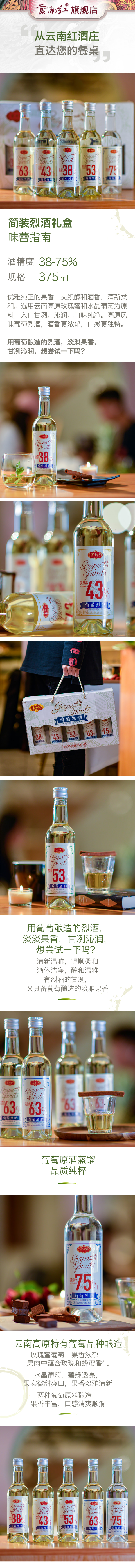 优雅纯正的果香,交织醇和酒香,清新柔和。选用云南高原玫瑰蜜和水晶葡萄为原料,入口甘冽、沁润、口味纯净。高原风味葡萄烈酒,酒香更浓郁,口感更独特。 用葡萄酿造的烈酒,淡淡果香, 甘冽沁润,想尝试一下吗?