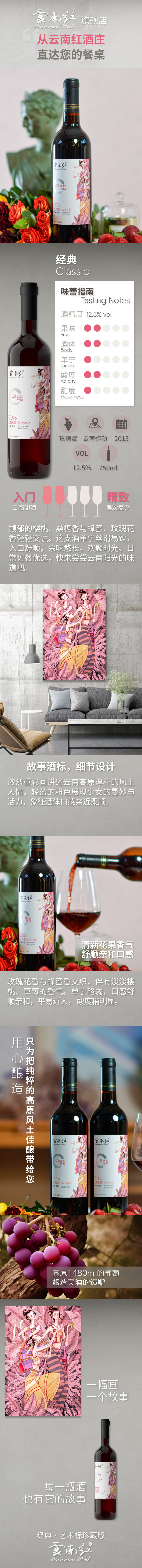 馥郁的樱桃、桑椹香与蜂蜜、玫瑰花香轻轻交融。这支酒单宁丝滑易饮,入口舒顺,余味悠长。欢聚时光、日常佐餐优选,快来尝尝云南阳光的味道吧。
